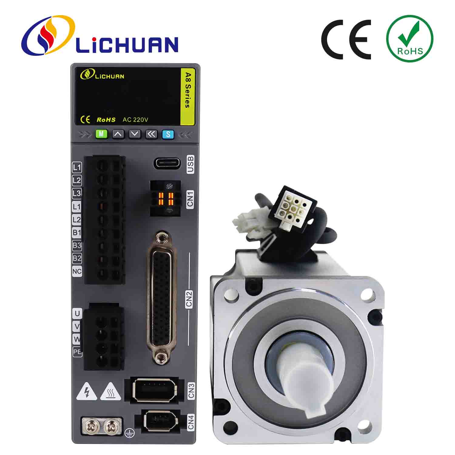 लिचुआन एसी सर्वो मोटर ड्राइवर किट A8 उच्च सटीकता STO ABZ 1000W 1KW 3.2N.m 220V 5.8A 2500/3000RPM IP65
