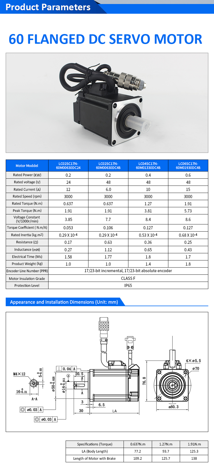 पल्स/RS485/CANopen/EtherCAT 60 FLANZED 400W लो वोल्टेज DC सर्वो मोटर ड्राइवर किट